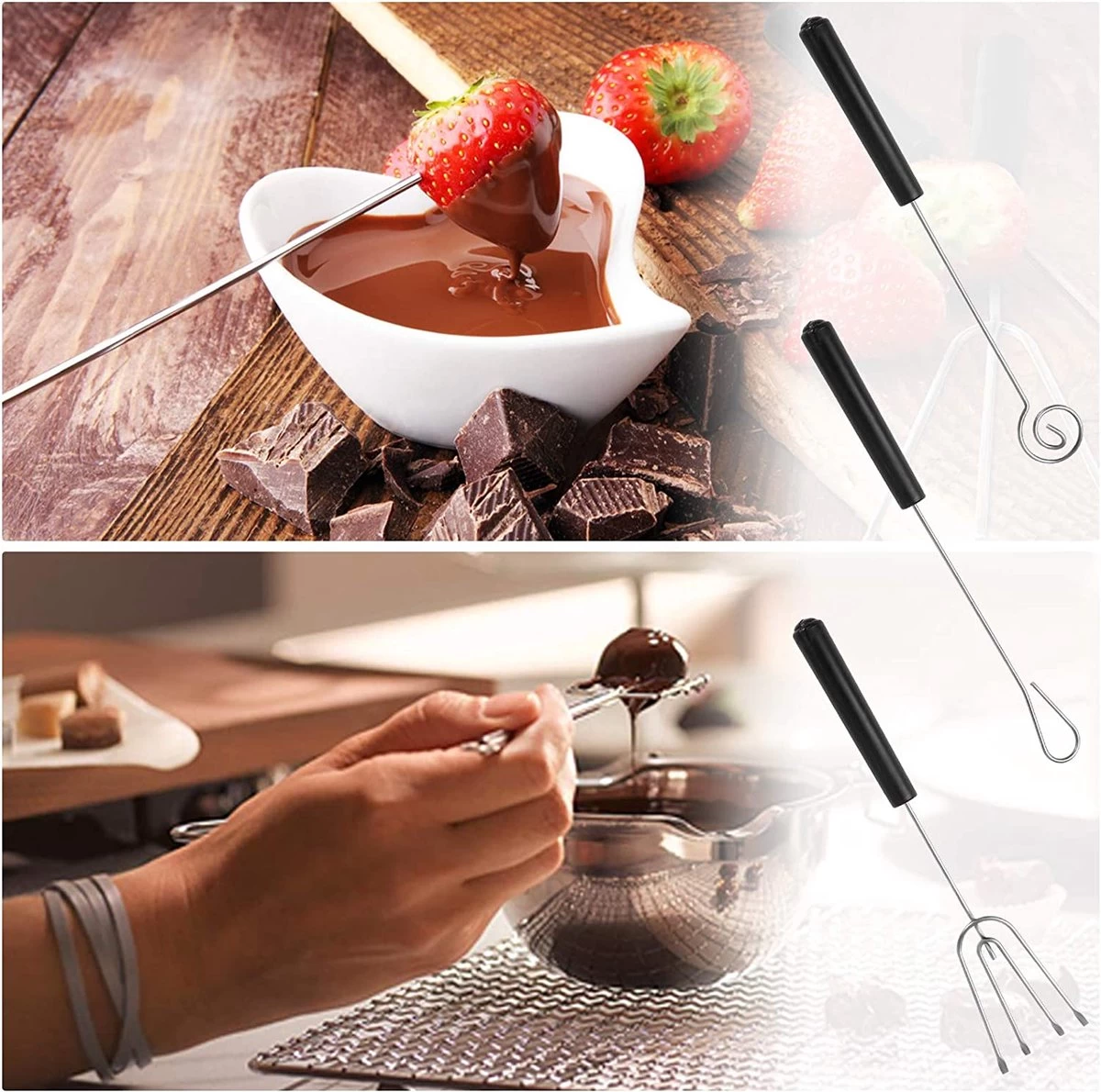- Ensemble de fourchettes à chocolat : notre Set de fourchettes à chocolat peut être utilisé pour faire divers chocolats, très appropriés pour le chocolat fait main, les truffes, les bonbons et les gâteaux, etc. Laissez-vous expérimenter la joie de cuisiner.