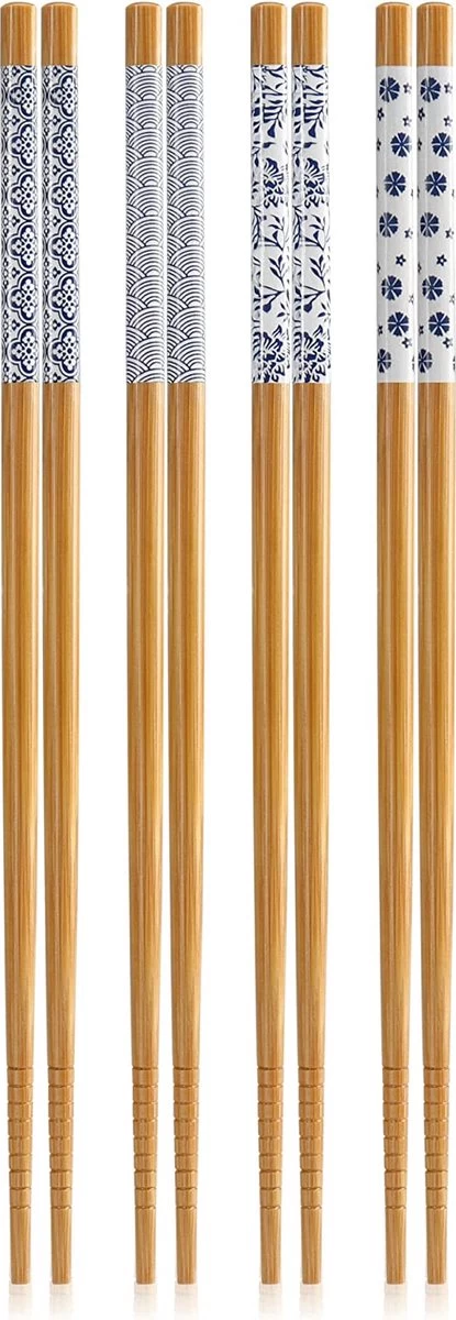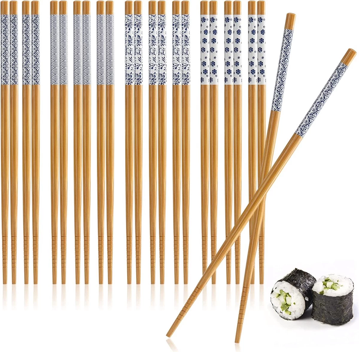 12 Paires De Baguettes En Bambou – Baguettes Réutilisables – Ensemble De Baguettes En Bois Avec Design Bleu – Couverts En Bambou Avec Rebord Décoratif – Baguettes En Bois