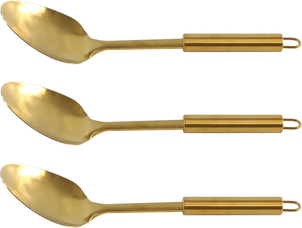 3x Cuillères De Service / Cuillères à Sauce En Acier Inoxydable Or 32 Cm – Chips De Légumes – Servir Légumes / Sauce – Ustensiles De Cuisine 3 Pièces