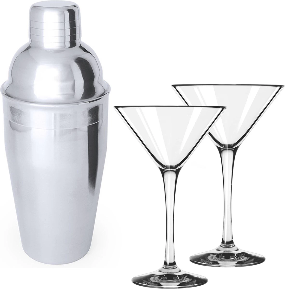 4x Verres à Verres à cocktail / verres à martini 260 ml en verre + shaker à cocktail semi-mat 550 ml en acier inoxydable. Servez les cocktails/martinis les plus savoureux dans ces verres luxueux d’environ D10 x H18 cm. Vous recevrez 1 paquet de 4 pièces dont 1 shaker à cocktail en acier inoxydable semi-mat d’environ D8,5 x H21 cm. Ajouter les ingrédients, bien agiter puis verser dans un verre. Les verres et le shaker vont au lave-vaisselle.