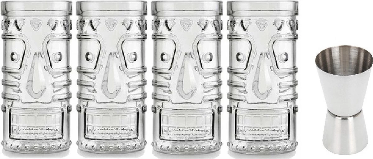 Y compris cocktail / bar buddy / doseur doseur 2 en 1 en acier inoxydable 15/30 ml. composé de 1x 4x verres à Verres à cocktail / verres Mai Tai transparents 490 ml, 1x verre à cocktail / doseur / doseur 2-en-1 en acier inoxydable 15/30 ml