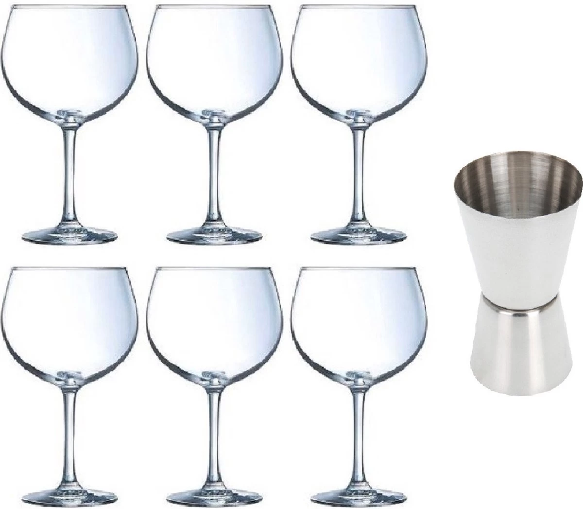 6x Gin Tonic / Verres à Cocktail 700 Ml – Avec Gobelet Doseur En Acier Inoxydable / Taille De Barre 2-en-1 15/30 Ml