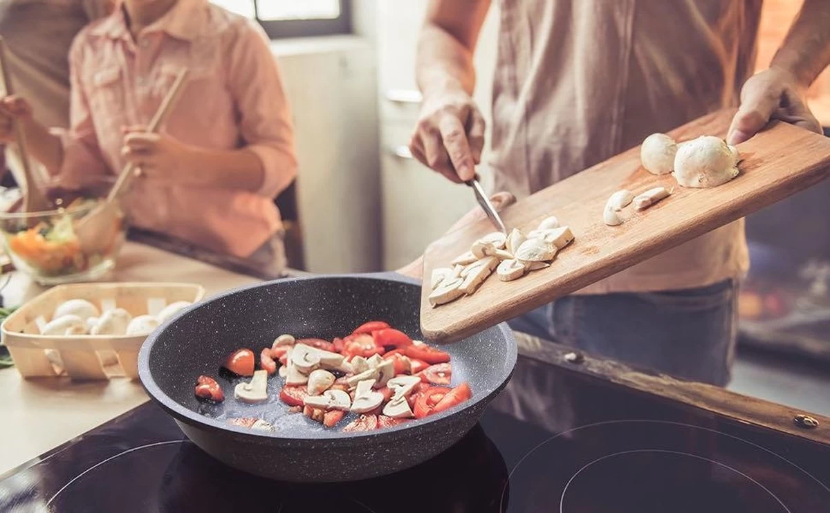 Perfect pour préparer toutes sortes de recettes, cette poêle en granit est un incontournable pour libérer votre chef intérieur. Tout ce dont vous avez besoin pour préparer de délicieux repas au wok et plus encore se trouve dans cette poêle à frire antiadhésive. Fabriquée en aluminium épais, la poêle en granit antiadhésif chauffe rapidement et uniformément pour des résultats parfaits. La surface antiadhésive en granit favorise une cuisson saine en utilisant moins d’huile.