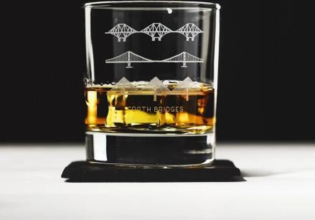 Beau Verre à Whisky Avec Dessous De Verre En Ardoise | Fort Bridges Pour Le Vrai Connaisseur | Emballage Cadeau | Fabriqué En Ecosse