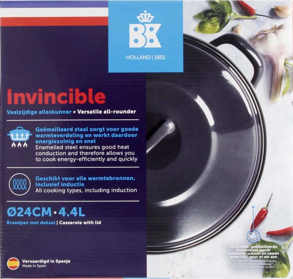 Le BK Invincible est un appareil polyvalent de cuisson et de rôtissage. Les casseroles sont en acier émaillé et sont donc extrêmement solides.