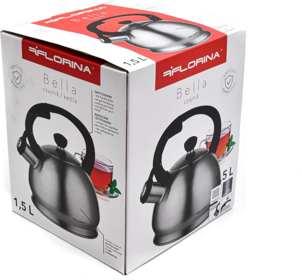 Une bouilloire est un appareil indispensable dans chaque cuisine. Le choix : électrique ou traditionnel vous est laissé, mais être ici signifie que vous vous orientez vers des solutions traditionnelles. Une bouilloire avec sifflet est associée à une ambiance familiale et conviviale. La bouilloire sifflante » Bella » est fabriquée en acier inoxydable de haute qualité. Le fond de la bonne épaisseur garantit que l’eau bout au bon moment. Il convient à toutes les sources de chaleur, y compris l’induction. Avec une capacité d’au moins 1,5 L, vous pouvez faire bouillir suffisamment d’eau pour 3 à 4 tasses de thé.