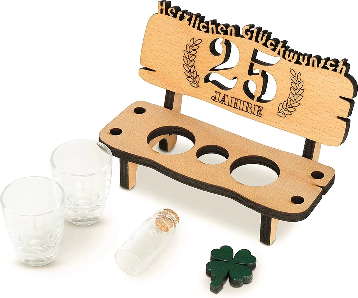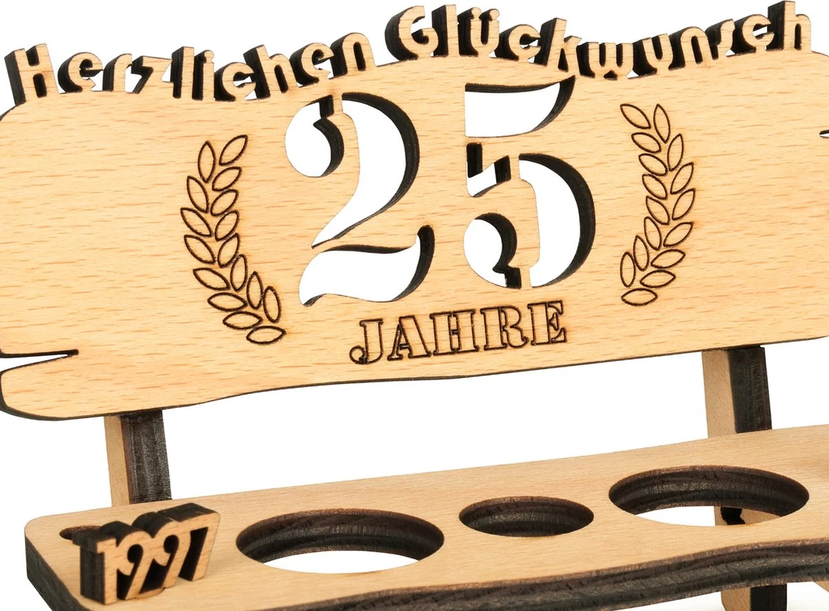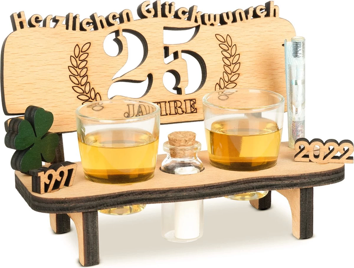 Brynnberg Schnapsbank Mit Jahreszahl – Holz Lorbeerkranz Mit Zahl Engraving – Gift Zum 25 Hochzeitstag Couple Anniversary – Geburtstag Und Pärchen Gift Idea – Schnapsgläser Latte Mit 2 Gläsern