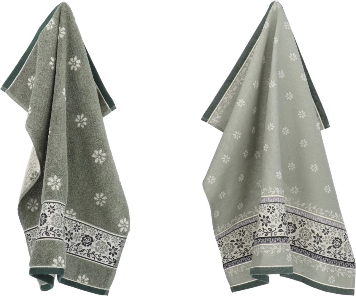 Bunzlau Castle Torchon De Cuisine Et Torchon Belle Fleur Vert Foncé | 100% Coton Biologique | Torchon 60x53cm Et Torchon 65x65cm