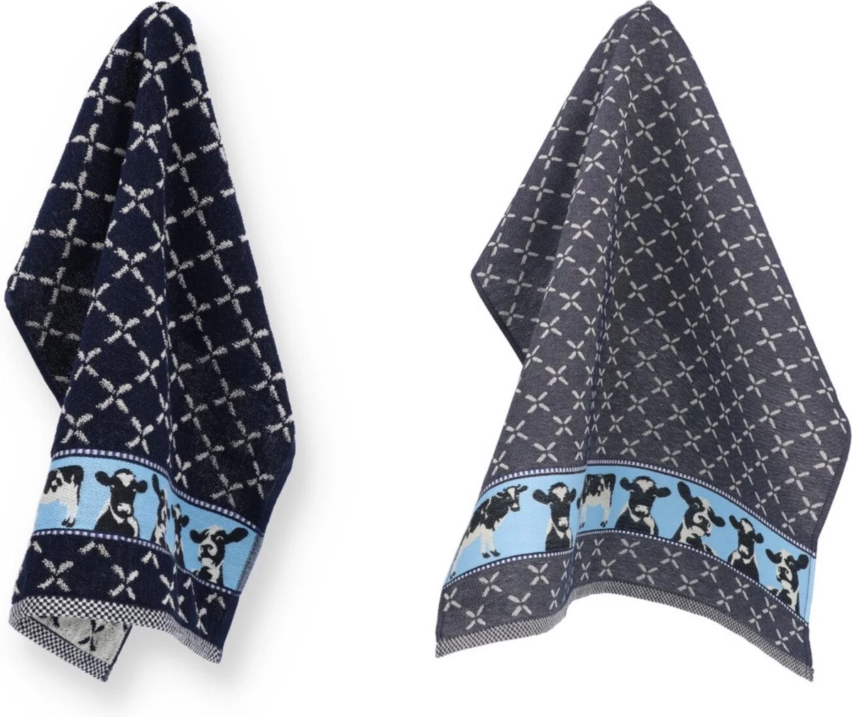 Bunzlau Castle Torchon De Cuisine Et Torchon Vache Bleu Foncé | 100% Coton Biologique | Torchon 60x53cm Et Torchon 65x65cm