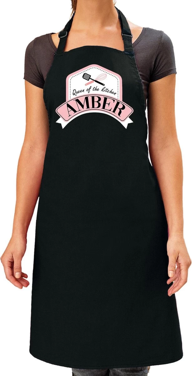 Cadeau Prénom Ambre – Reine De La Cuisine Tablier De Cuisine / Tablier Barbecue Noir – Dames / Femmes – Cadeau Fête Des Mères / Anniversaire