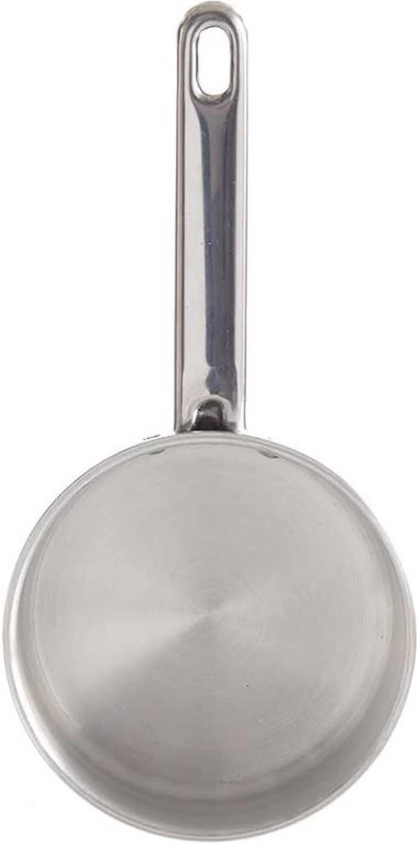 Casserole/casserole/saucière couleur argent 26 x 14 x 8 cm en aluminium 0,6 litre. La casserole a un diamètre de 12 cm au sommet. Cette casserole a un couvercle. Convient pour le gaz, y compris le four, pas l’induction. Sans PFOA. Convient au lave-vaisselle: oui. Épaisseur 0,7 mm.