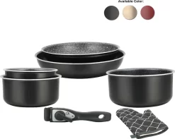 Herzberg HG-8053: Ensemble De Cuisine 7 Pièces Avec Revêtement En Marbre Et Poignée Amovible