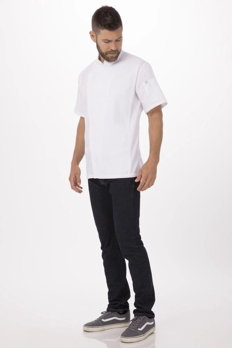 Fabriquée à partir de polyester / coton léger, cette élégante veste de chef Springfield de Chef Works possède des panneaux latéraux ventilés Cool Vent qui vous aident à rester au frais tout au long de la journée. Le tube s’enclenche et s’enlève facilement et rapidement grâce à la fermeture éclair bidirectionnelle et la boucle dans le cou garantit qu’un tablier reste en place. Le tube dispose également de 2 poches sur les manches, spécialement conçues pour contenir un thermomètre et un téléphone portable.
