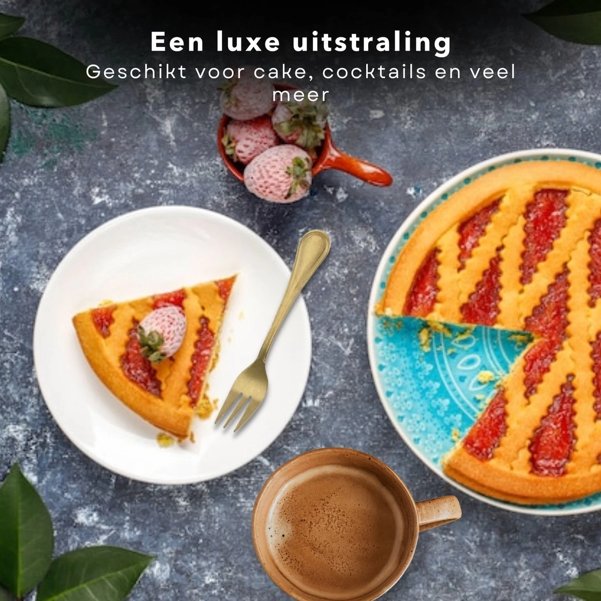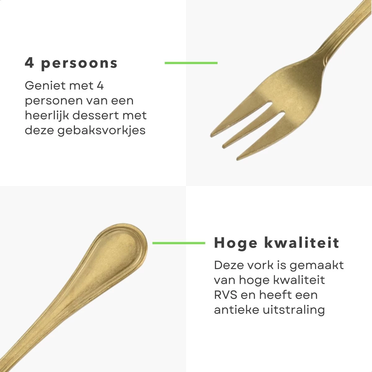 Savourez le dessert avec nos fourchettes à pâtisserie Cheqo Gold . Ces fourchettes à pâtisserie sont livrées en lot de quatre, parfaites pour les invités ou lorsque vous voulez montrer vos talents culinaires. Fabriqués en acier inoxydable avec une finition antique, ils sont polis jusqu’à l’or pour un aspect brillant. Ajoutez une touche d’élégance à n’importe quelle table avec ces petites fourchettes. Que vous dégustiez un bon morceau de gâteau ou un délicieux cocktail, nos fourchettes à pâtisserie Cheqo Gold sont le complément parfait.