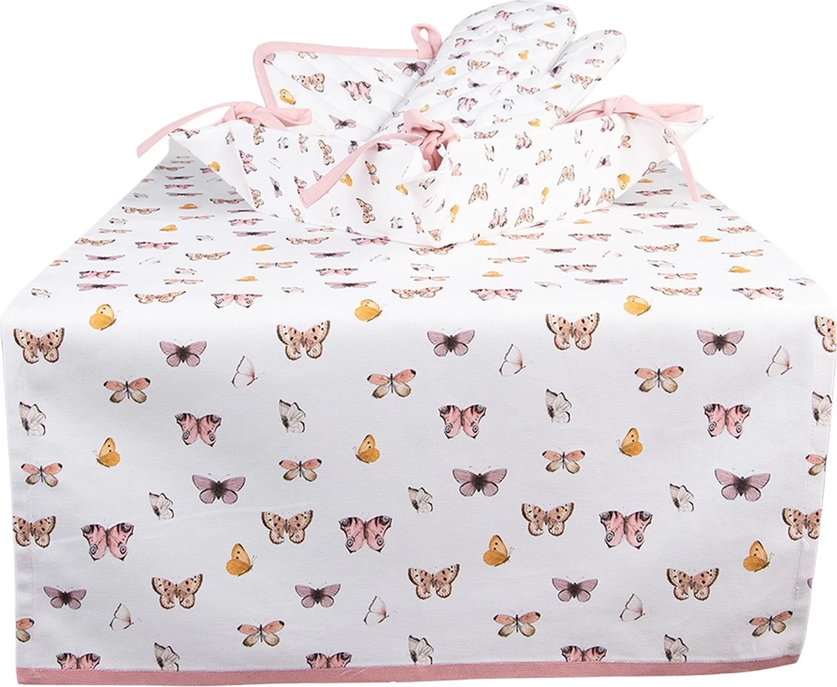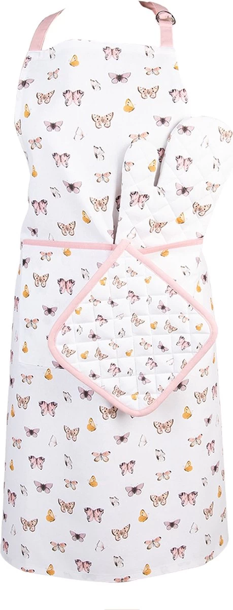Quand on pense à l’été, on pense aux papillons colorés. Cette collection mignonne et très étendue présente un motif avec une gamme de papillons différents et joyeux. La couleur contrastante rose complète l’ensemble. Une série qui comprend des articles tels que des coussins décoratifs et de chaise, des nappes, des chemins de table, des sets de table et des serviettes. Des éléments tels que des torchons et des corbeilles à pain sont disponibles pour la cuisine (vivante). La bonne chose à propos de cette série est que le tablier de cuisine, la manique et le gant de four sont disponibles pour les adultes et les enfants. La vaisselle assortie rend les repas en famille et entre amis encore plus agréables. Le Happiness est comme un papillon !