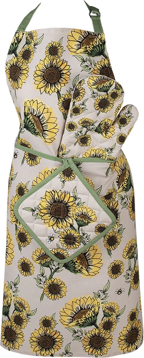 Le tournesol symbolise l’amour, l’été et le soleil. C’est pourquoi cette belle fleur est au centre de cette collection. Une petite série avec un motif plein de tournesols en fleurs et d’abeilles mignonnes. Mettez la table avec l’un des chemins de table et la corbeille à pain assortie et faites entrer l’été dans la cuisine avec des éléments tels que les torchons, les maniques, les tabliers de cuisine et les gants de cuisine. Optez pour la couleur et créez votre eigen été sur la table et dans la cuisine.