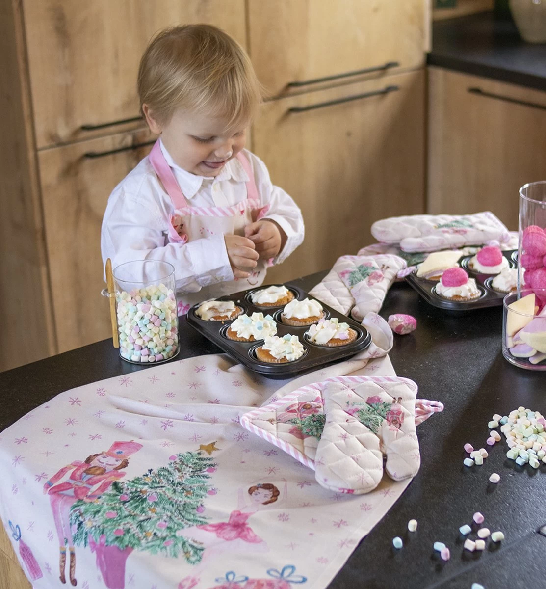 Cette série aux couleurs rose tendre donne forme à l’histoire du casse-noix. Cette série textile est également disponible pour les enfants afin que toute la famille puisse se mettre au travail dans la cuisine. Le motif avec tous les éléments reconnaissables de ce thème donne à cette collection un clin d’oeil de jeunesse. Un casse-noix est un symbole de bonne chance. Profitez des beaux moments ensemble.