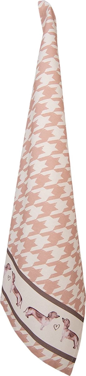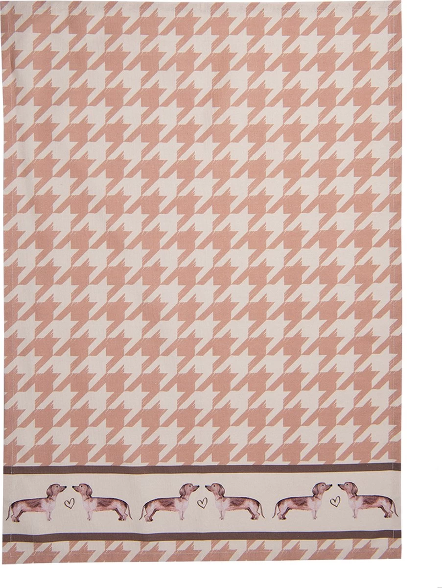 Torchon de cuisine, torchon en coton de couleur Beige avec du marron avec un imprimé de teckels de la marque Clayre & Eef.