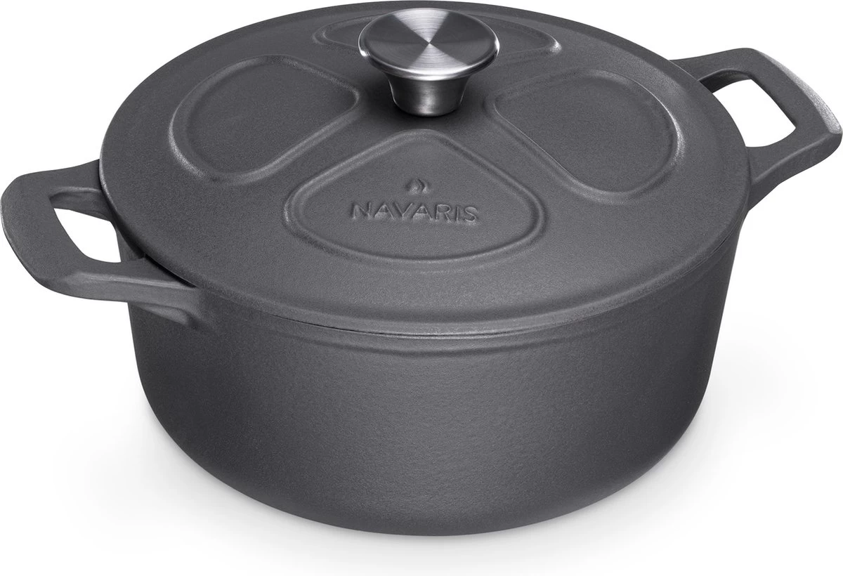 - POÊLE POLYVALENTE : La Navaris en fonte Navaris est incroyablement polyvalente. Rôtir de la viande, préparer un ragoût, faire de la soupe ou cuire du pain : tout est possible dans cette poêle en fonte.