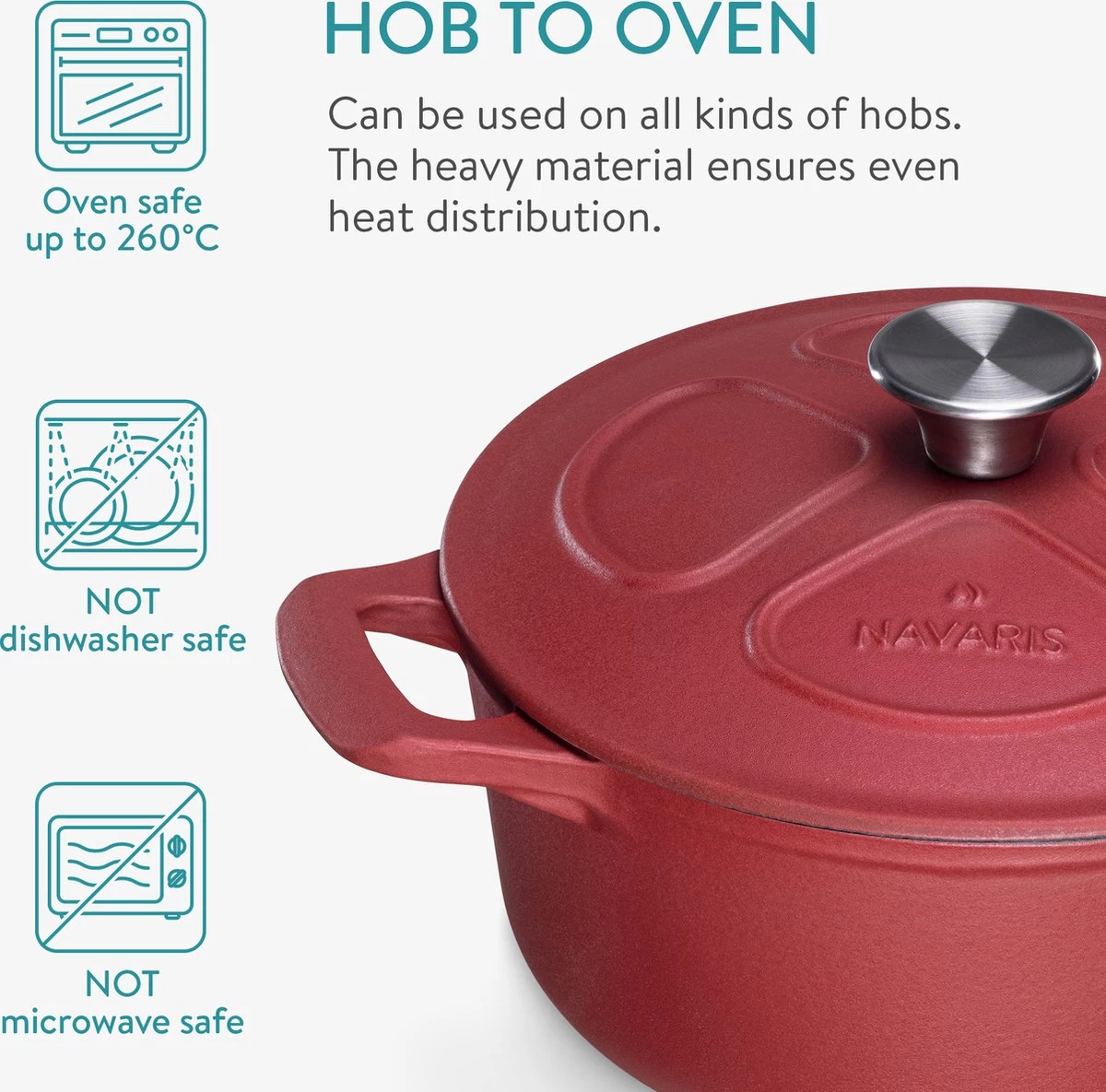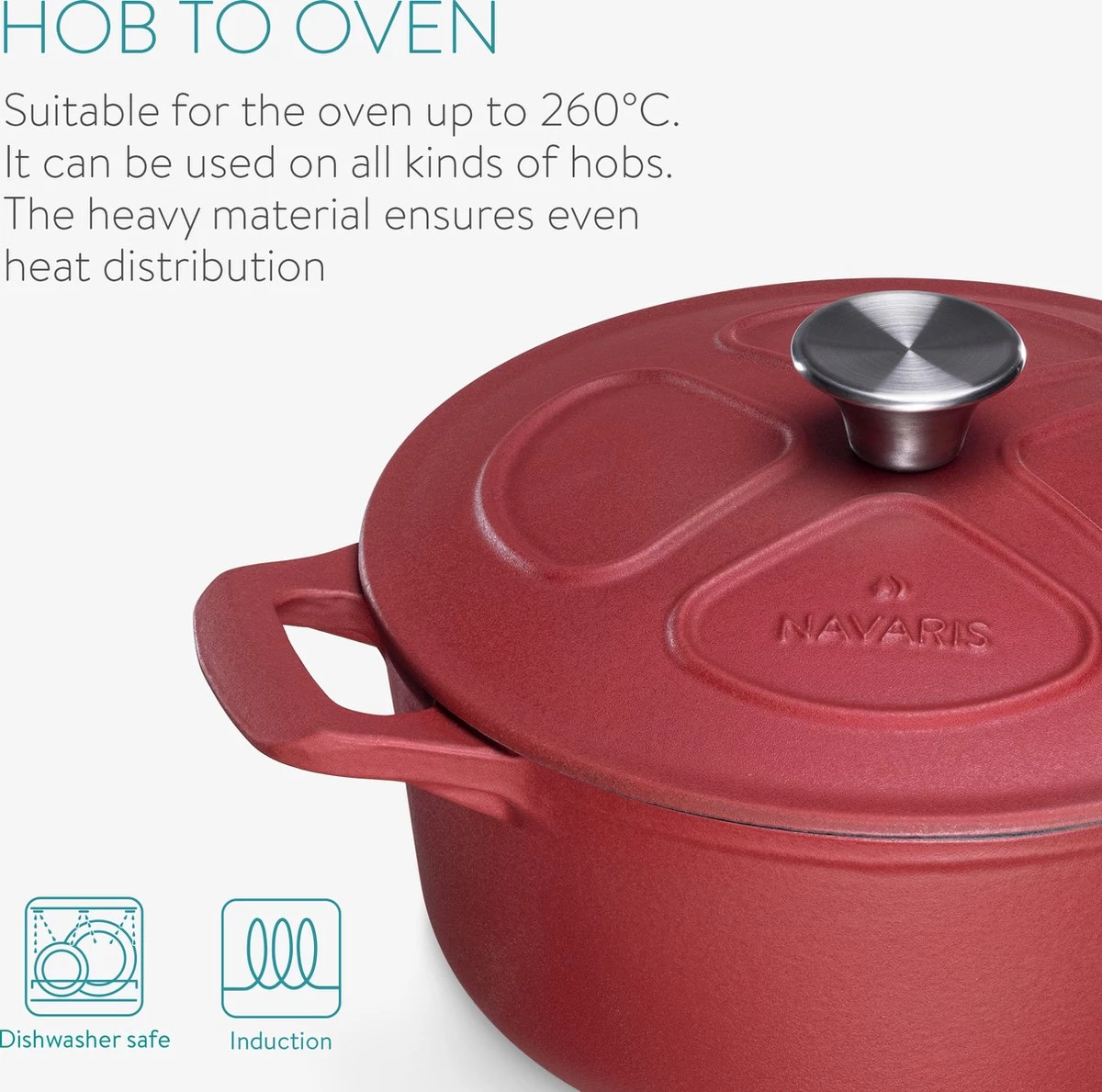 - POÊLE POLYVALENTE : La Navaris en fonte Navaris est incroyablement polyvalente. Rôtir de la viande, préparer un ragoût, faire de la soupe ou cuire du pain : tout est possible dans cette poêle en fonte.