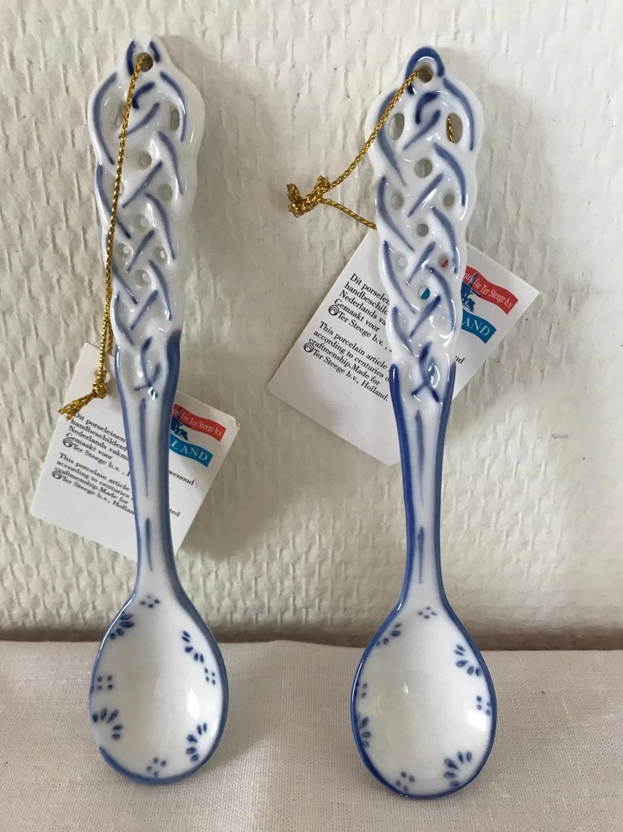 Cuillère joliment conçue en osier et bleu de Delft peint à la main.