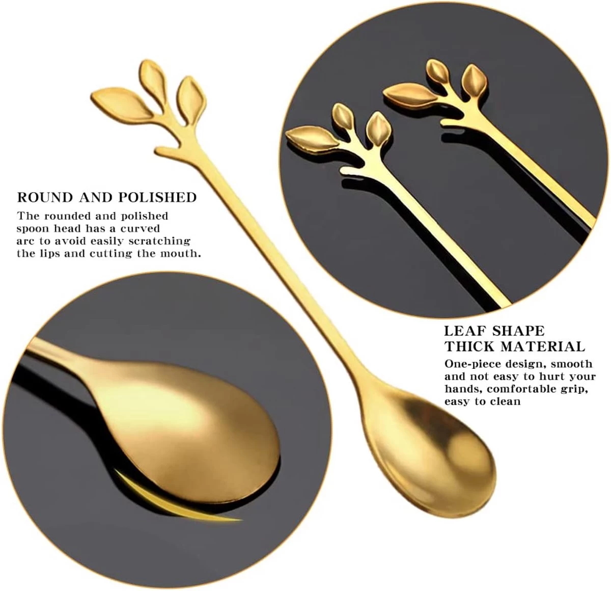 - 【Conception de haute qualité】 La belle forme de feuille d’or et l’agent de polissage fin font que les cuillères à café ressemblent à une œuvre d’art, sans bavures, adaptées comme décoration de table.
