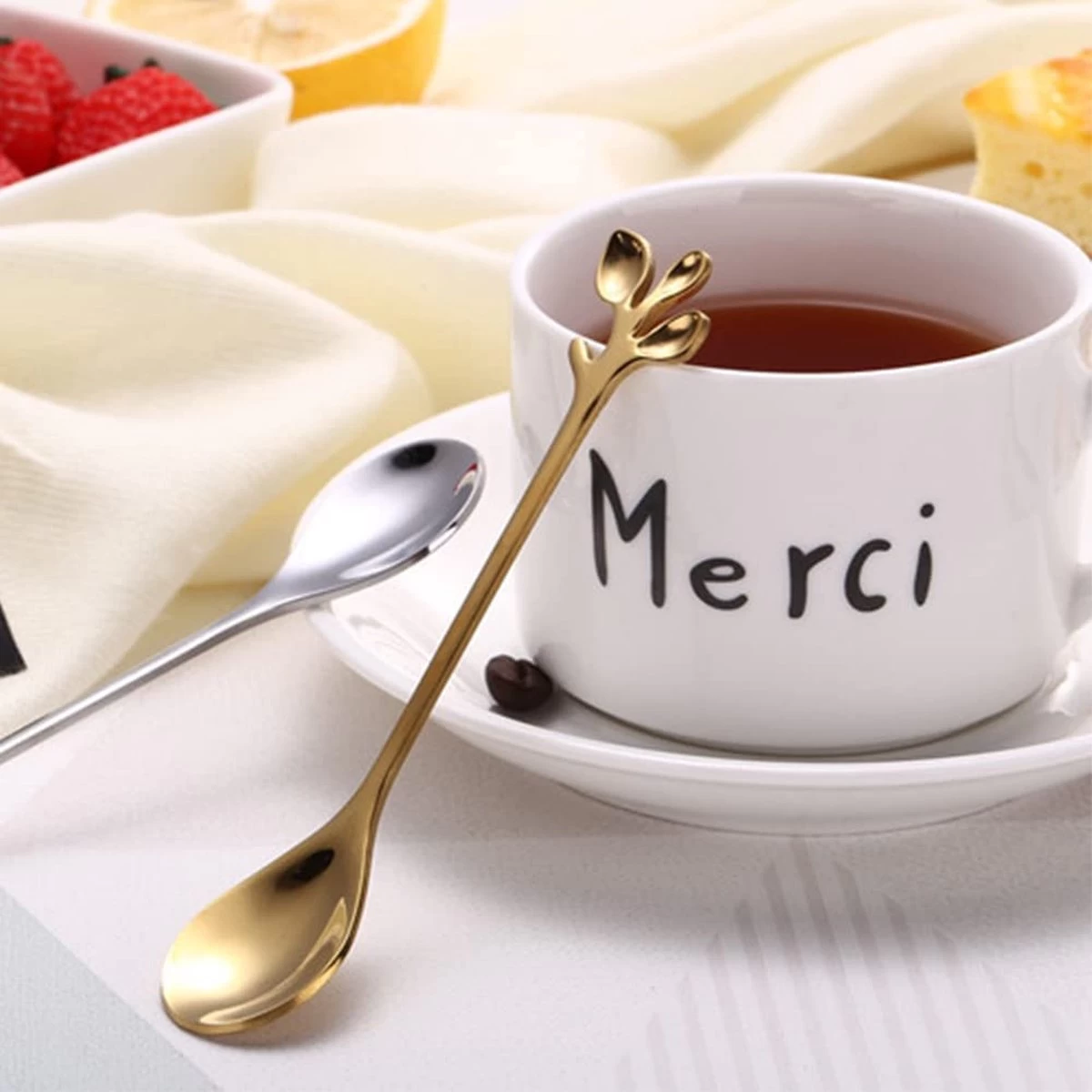 - Largement utilisé : l’ensemble de couverts en or convient aux gâteaux, desserts, café, thé, crème glacée, etc.