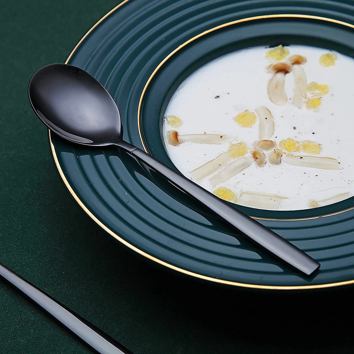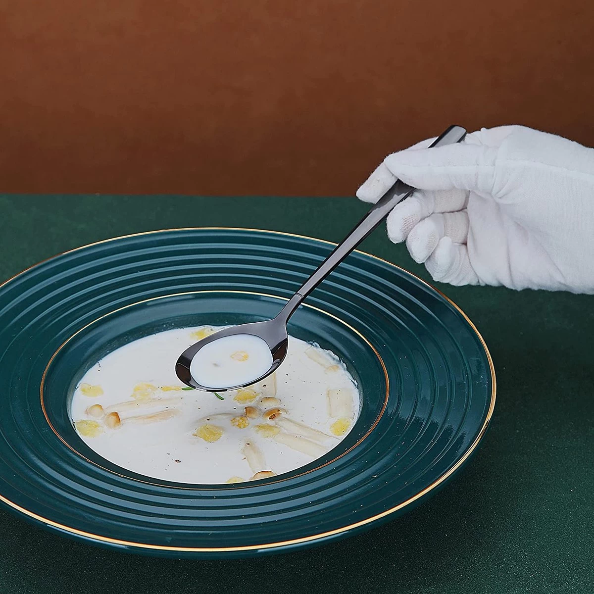 - Comprend 6 cuillères à soupe noires pour 6 personnes