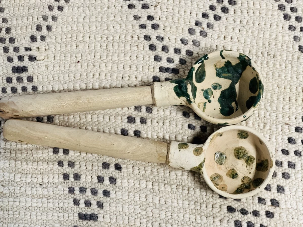 Notre gamme de poteries Tamegroute est conçue pour être chérie, ces cuillères émaillées vertes Tamegroute du Maroc sont le complément parfait à toute table à manger pour une présentation de dîner unique. Ils se déclinent en six styles uniques, glaçure marbrée, demi-glaçure et glaçure complète dans les couleurs emblématiques de Tamegrouite. Les cuillères sont également munies d’un manche en bois d’acacia. Chaque cuillère est faite à la main et donc unique.