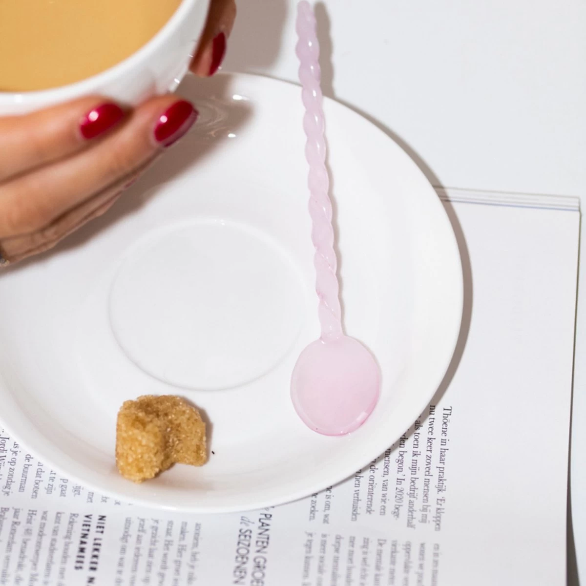 Un ensemble de cuillères en verre torsadées pour commencer une fête avec votre boisson. Changeons de cap ! Notre set rose clair de quatre cuillères en verre de 15 cm.