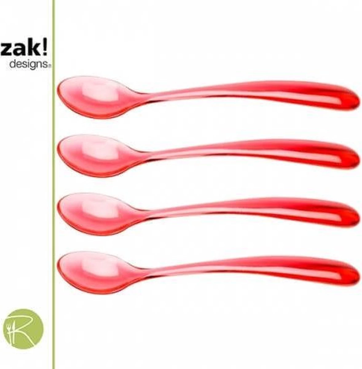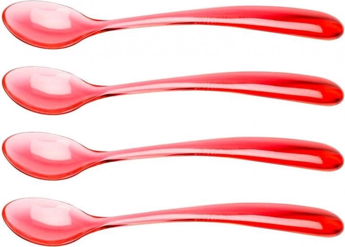 L’ensemble se compose de quatre cuillères à glace rouges de la collection Stacky et sont en plastique.