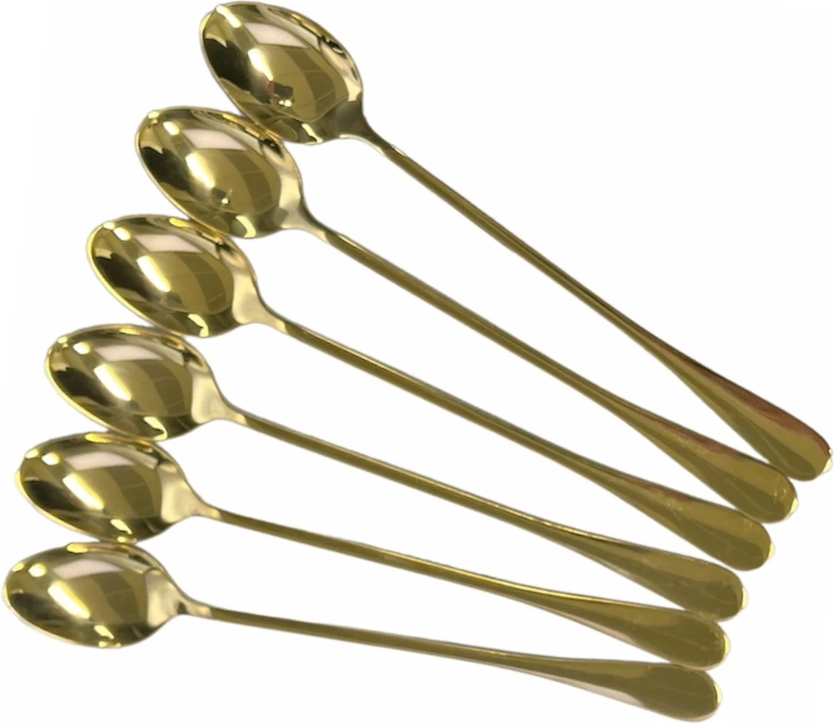 Set de 6 cuillères à Latte Macchiato en acier inoxydable couleur or. Pratique pour remuer ou retirer de longs verres.
