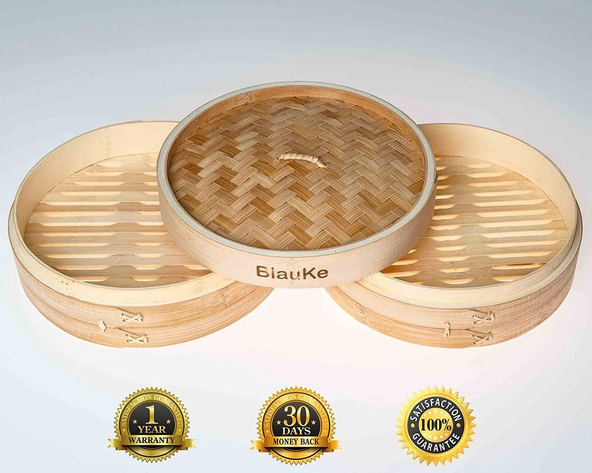 - DIMENSIONS : Notre cuiseur vapeur en bambou a un diamètre extérieur de 25 cm et un diamètre intérieur de 23,5 cm. La profondeur interne de chaque couche est de 4 cm et la hauteur totale du panier vapeur à deux couches est de 14 cm. Notre cuiseur vapeur en bambou s’adapte à la plupart des casseroles et woks de cuisine.