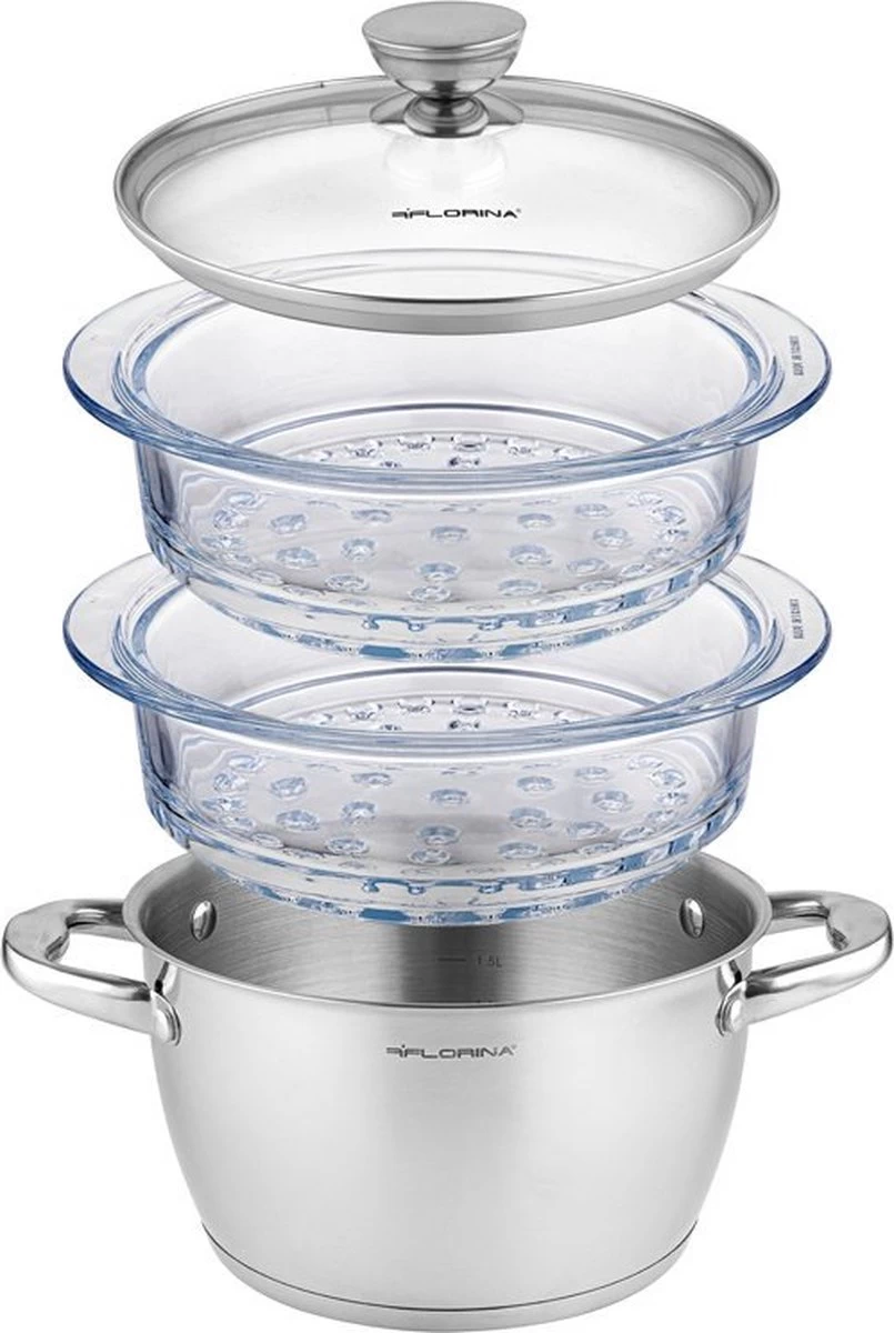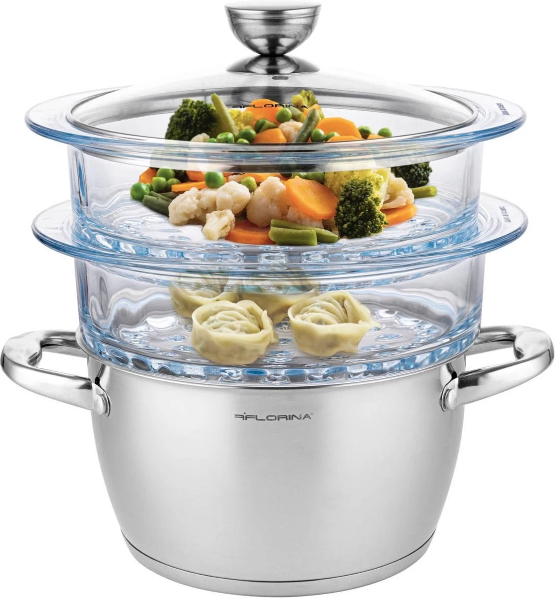 Si vous recherchez une méthode de cuisson rapide pleine de saveurs et de vitamines, nous vous présentons le cuiseur vapeur Stima d’un diamètre de 20 cm. Versez un peu d’eau au fond de la casserole en acier inoxydable et répartissez les ingrédients sur le niveau de verre suivant. En moins de 30 minutes votre repas est prêt, rempli du goût, des minéraux et des vitamines que vous perdez avec la cuisine traditionnelle.
