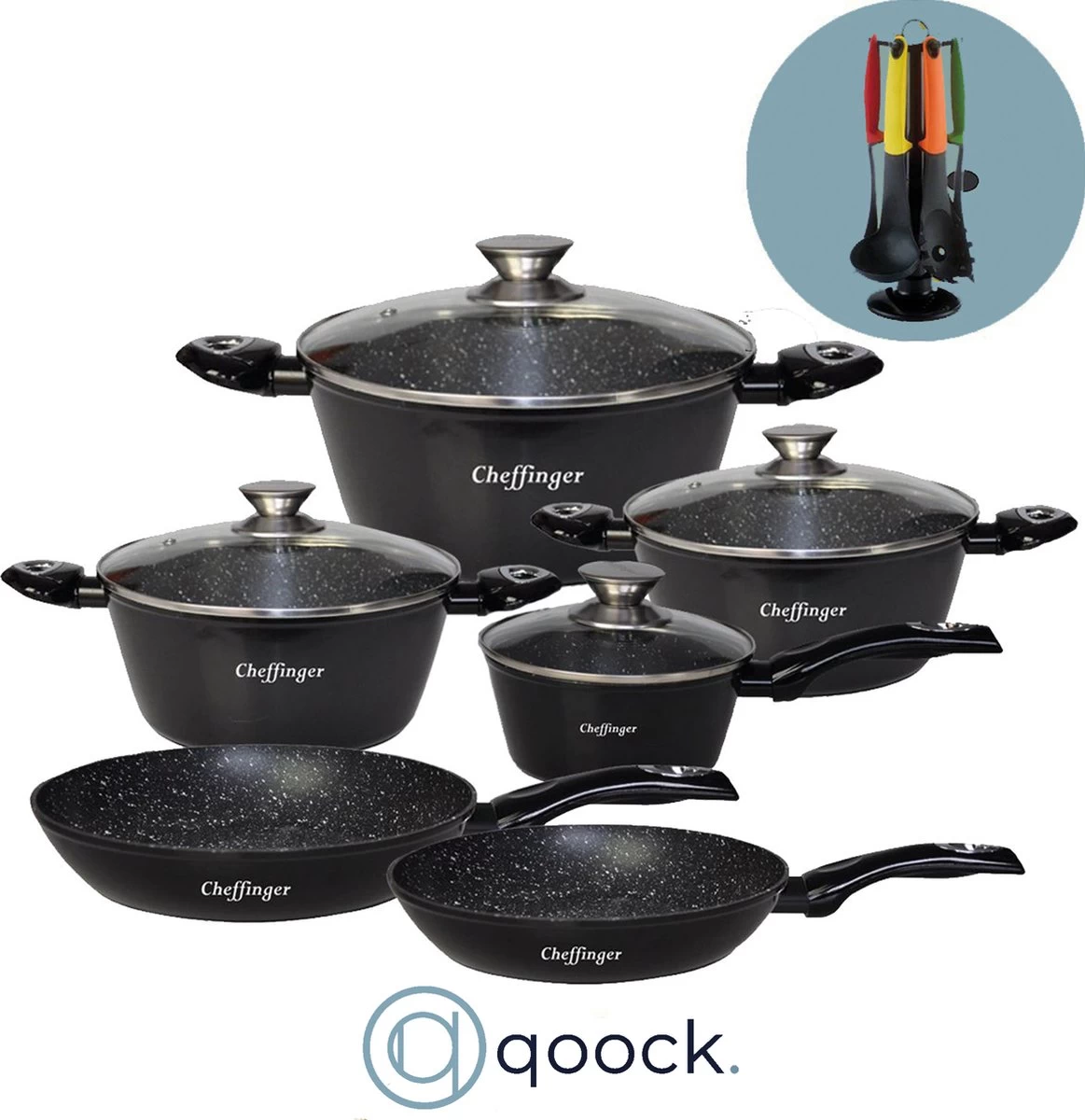 Les Casseroles et poêles sont en aluminium et ont un revêtement en marbre PFOA robuste. De plus, les casseroles sont équipées de poignées soft au toucher, bref un matériau très résistant et bien résistant aux rayures, aux dommages ou à la déformation. Vous pouvez laver les casseroles à la main, mais elles passent également au lave-vaisselle.Les casseroles conviennent à toutes les sources de chaleur et à l’induction.