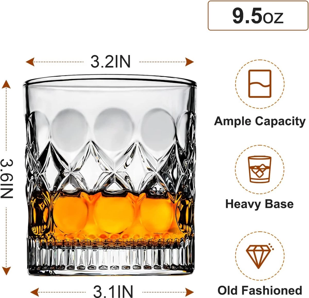 - Look classique, grande capacité : verres à whisky de 300 ml, adaptés aux boules de whisky et aux glaçons. Perfect pour boire votre bourbon préféré, scotch, vodka, cocktails à l’ancienne, tequila, gin, brandy ou votre liqueur préférée. Peut également être utilisé comme tasse à jus vintage ou tasse à eau.