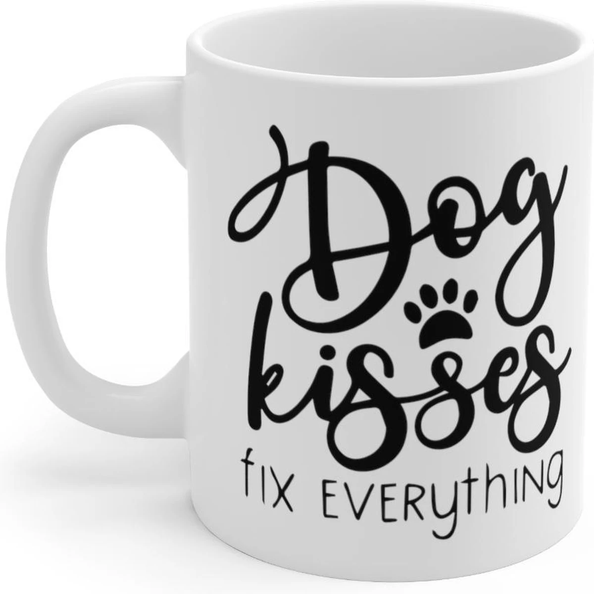 Dog Kisses Fix Everything Mug En Céramique, Mug Cadeau Drôle, Cadeau Pour Les Amoureux Des Chiens, Mugs Pour Propriétaires De Chiens, Mug De Qualité, D015-018W, 11oz,