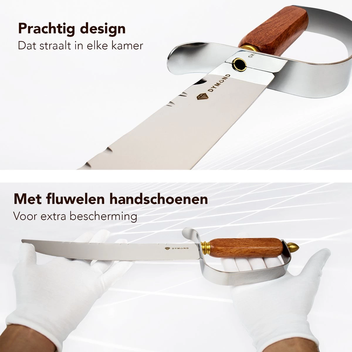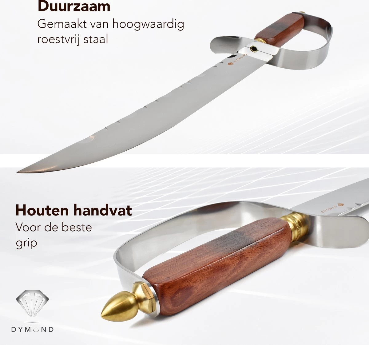 Ce beau couteau sabre de Dymund est fabriqué en acier inoxydable de haute qualité. Cela signifie que vous n’avez pas à vous soucier des microplastiques ou d’autres substances indésirables dans votre champagne.