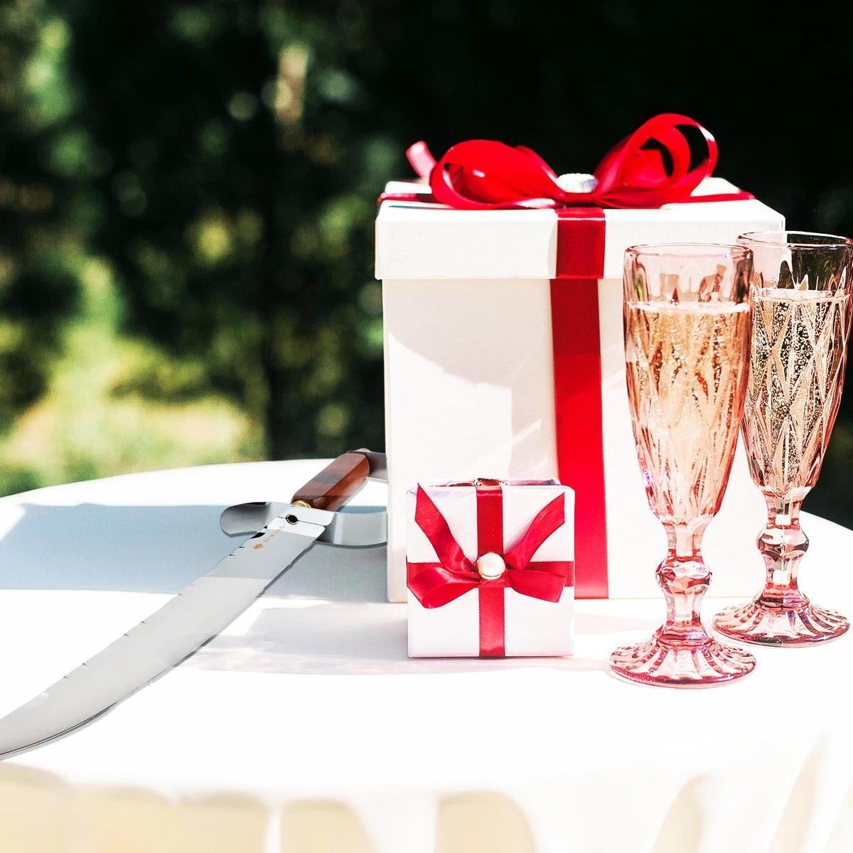 Le couteau sabre est fabriqué à partir du meilleur acier inoxydable de haute qualité. Il est très recherché comme cadeau et convient aux occasions spéciales telles que les fêtes, les mariages ou Noël.