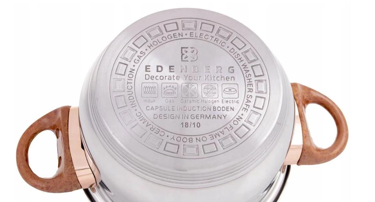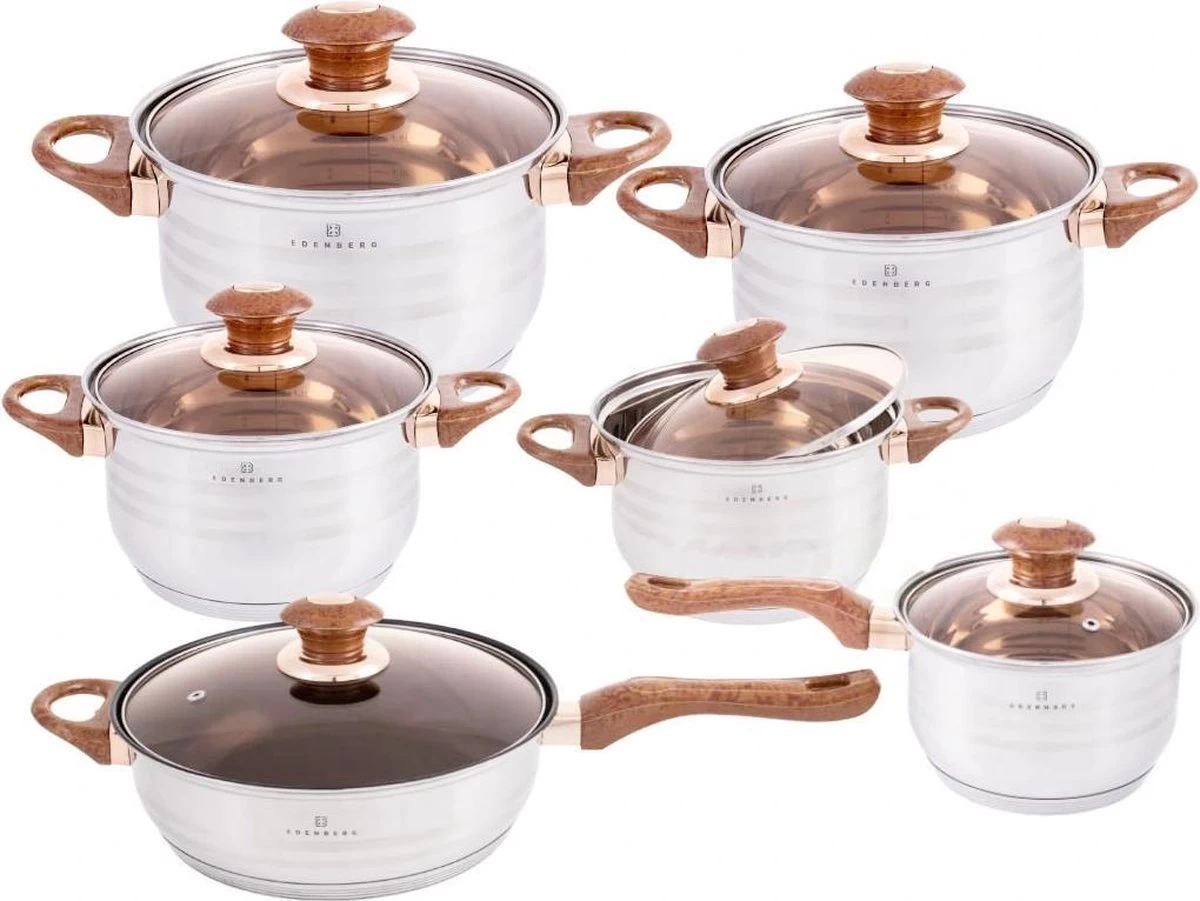 Bel ensemble de 12 casseroles de haute qualité. Un ensemble fabriqué en acier inoxydable de haute qualité. Produit de marque renommée EDËNBËRG. Le sol est constitué de 5 couches pour retenir la chaleur. La casserole a une indication de taille pratique pour une utilisation facile.