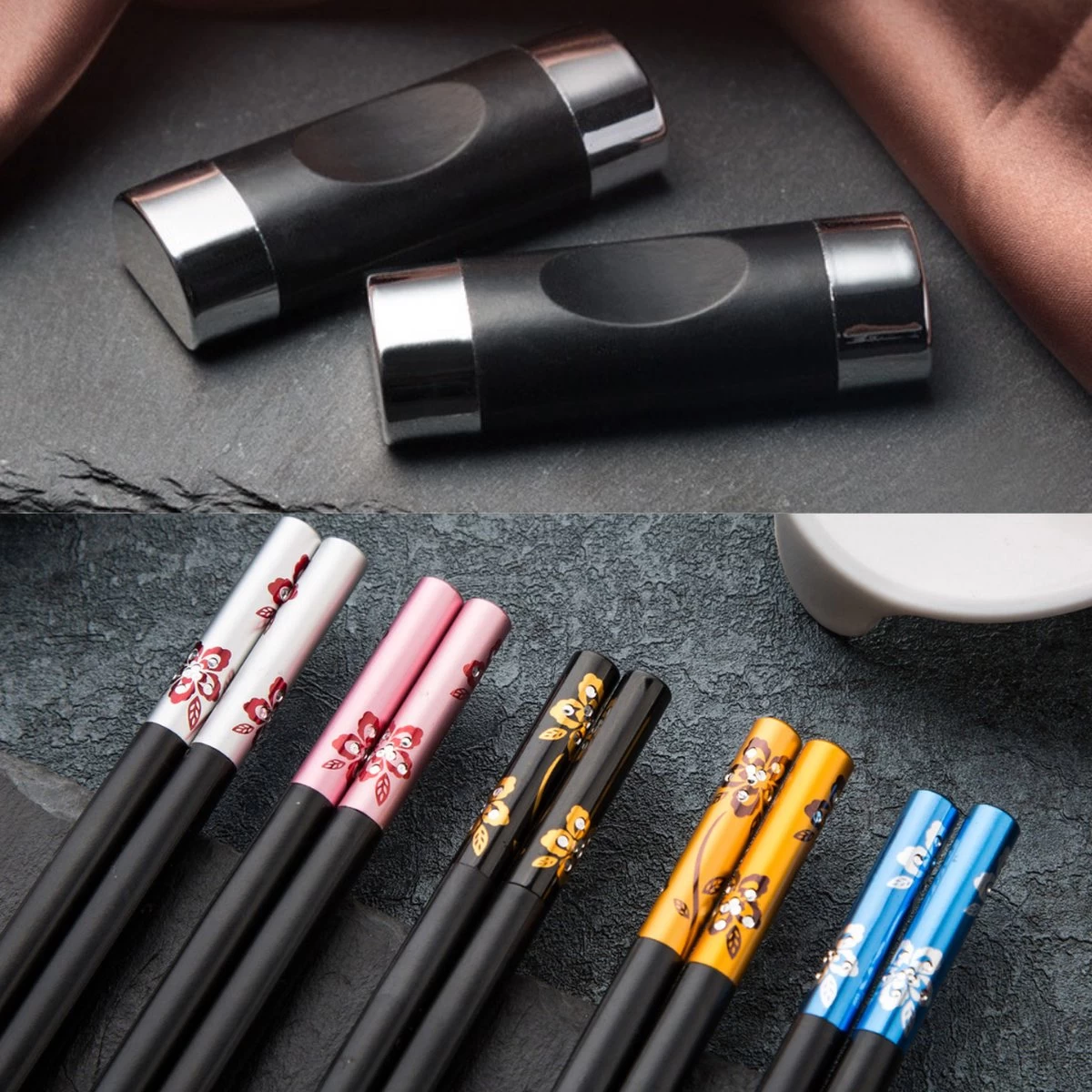 Les porte-baguettes sont en plastique de haute qualité avec de l’acier inoxydable. En mangeant, vous pouvez poser vos baguettes sur les élégants porte-baguettes.