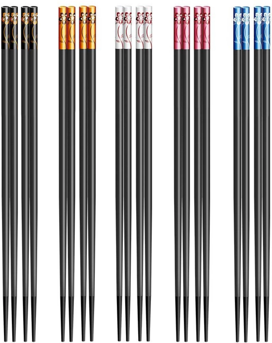 Les baguettes sont fabriquées en bois de haute qualité et recouvertes d’un revêtement noir. Les baguettes sont joliment finies avec 4 couleurs différentes pour que les baguettes restent bien ensemble. La partie colorée des baguettes est finie avec des pierres brillantes, ce qui rend les baguettes luxueuses.