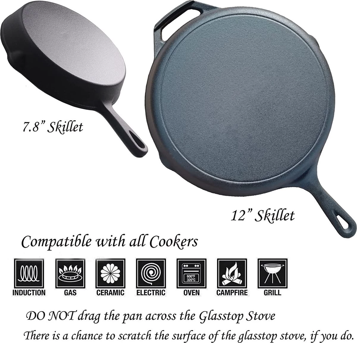 Ensemble De 2 Poêles En Fonte (8 Pouces Et 12 Pouces) Avec Revêtement En émail Noir Mat – Supports En Silicone Résistant à La Chaleur Inclus. Idéal Pour Une Utilisation Intérieure Et Extérieure, Va Au Four