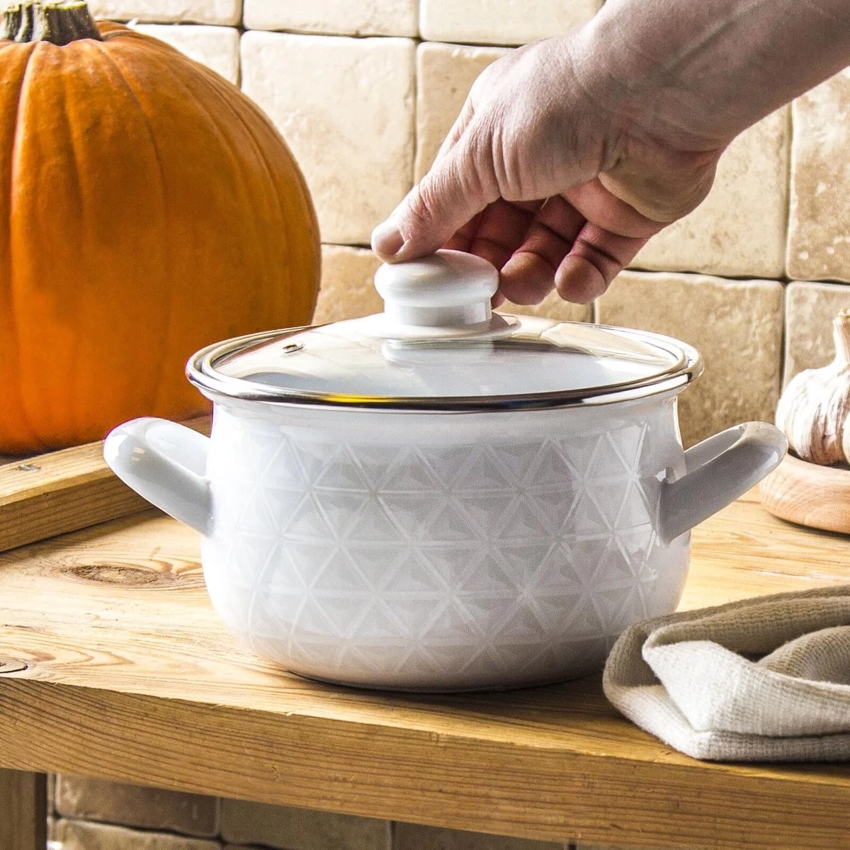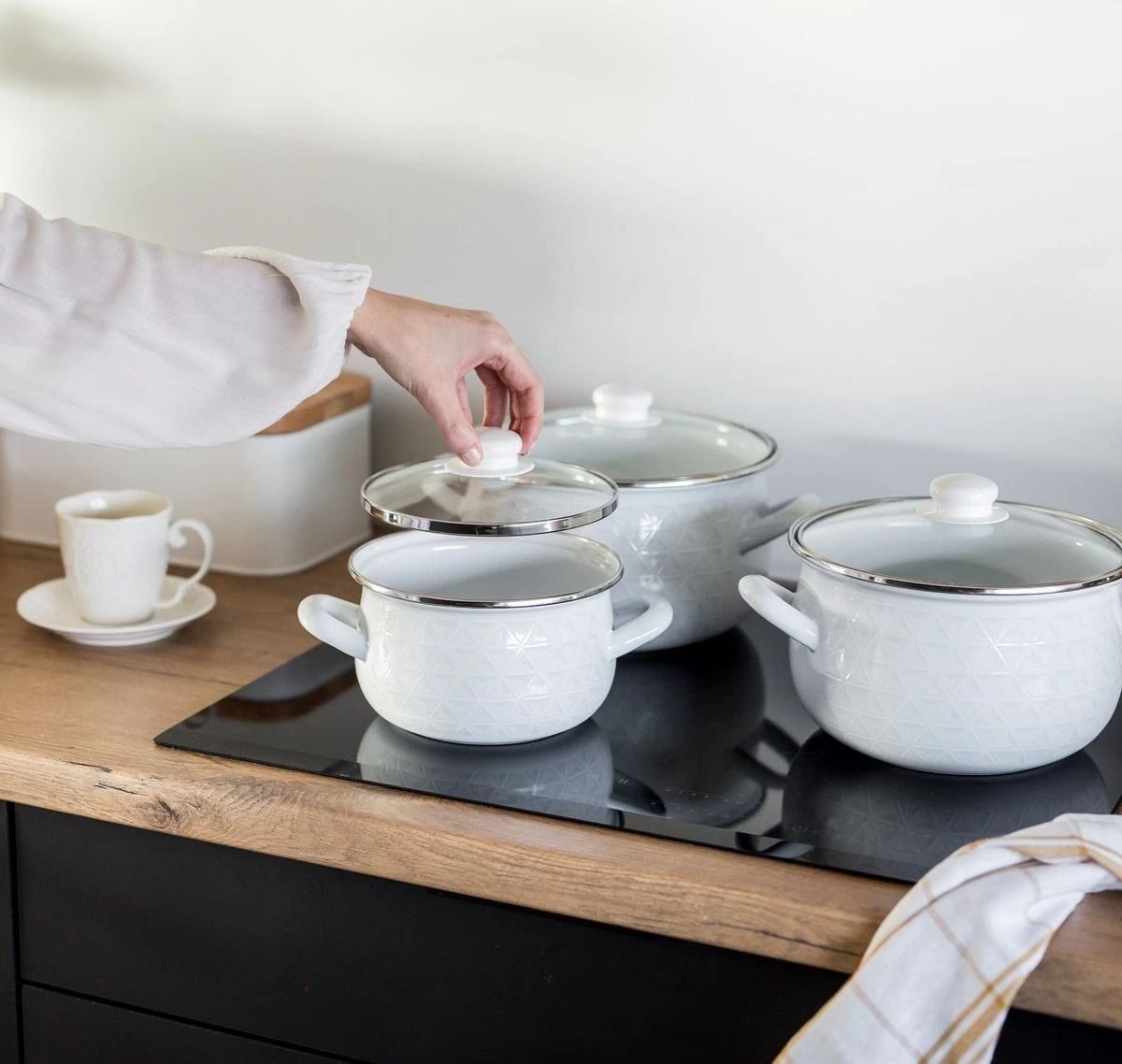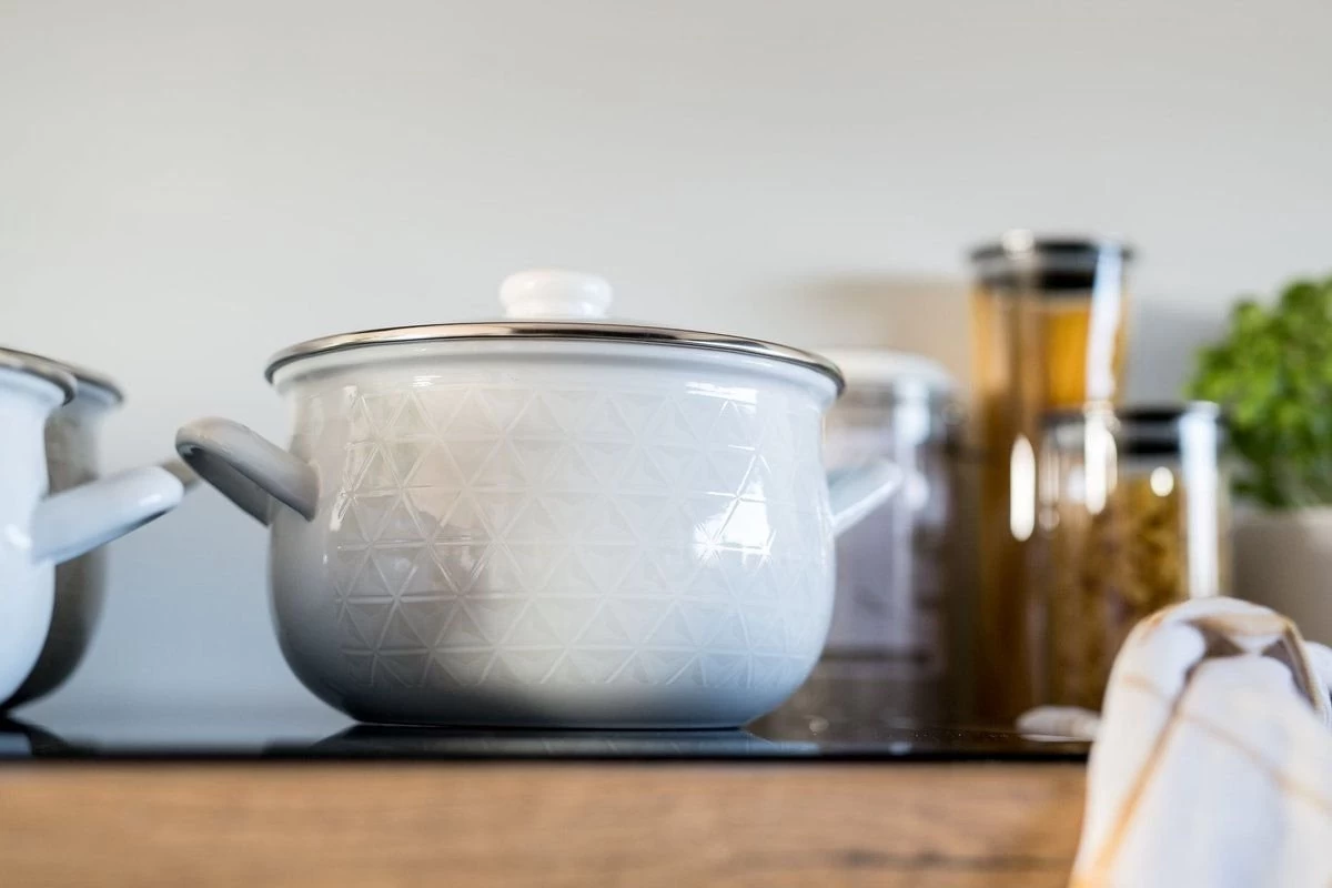 Les casseroles Emalia sont fabriquées en acier au carbone de la plus haute qualité recouvert d’une couche d’émail, qui agit comme un bouclier protecteur pour empêcher la pénétration de substances nocives dans les aliments. Un avantage supplémentaire des casseroles sont les couvercles transparents qui vous permettent de visualiser l’état de cuisson des plats. Les parois épaisses de la casserole gardent les aliments au chaud plus longtemps après la cuisson. Les solides poignées en émail ne chauffent pas, vous pouvez donc déplacer la casserole rapidement et confortablement.