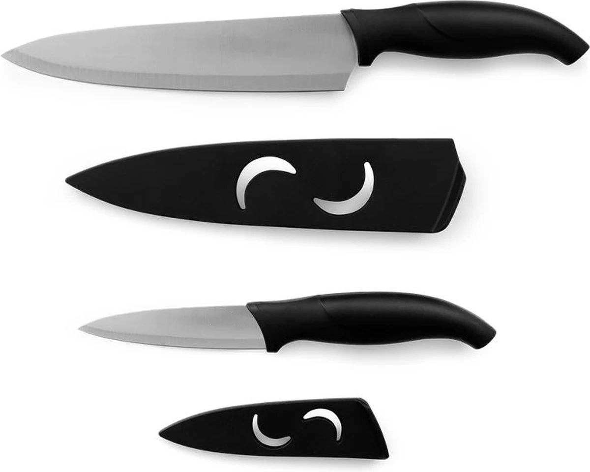 Et ce n’est pas tout. L’ensemble est livré avec de nombreux accessoires pour vous permettre de tout faire dans la cuisine. Vous disposez de 2 couteaux pour couper vos ingrédients. Avec le couvercle en verre, vous gardez la chaleur dans la casserole, mais vous gardez toujours un œil sur votre plat. De plus, vous avez immédiatement la bonne spatule ou cuillère pour chaque plat à ramasser ou à remuer. Vous les accrochez sur le support pratique, de sorte que vous pouvez facilement leur donner une place dans la cuisine. Est-ce que tout est sur la table ? Ensuite, les casseroles et les ustensiles de cuisine peuvent être mis au lave-vaisselle.
