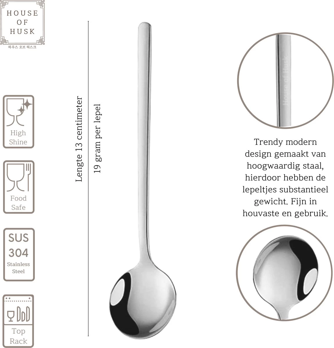 Vous ne voulez pas manquer cette cuillère à café tendance dans votre tiroir à couverts ! Conception mince en acier de haute qualité, une cuillère avec un poids qui remue confortablement et repose dans la main.