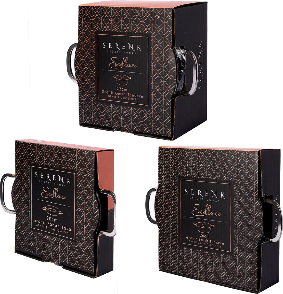 La collection Serenk Excellence est fabriquée selon des normes élevées et utilise les dernières technologies. C’est l’un des appareils de cuisson naturels les plus durables et les plus adaptés à l’homme et à l’environnement. Il ne contient aucun additif nocif. De cette façon, vous pouvez servir les plats préparés avec l’incontournable poêle antiadhésive à tous vos amis, parents et invités en toute confiance.