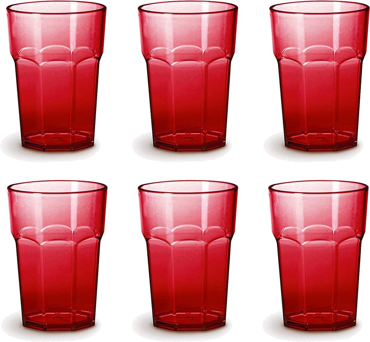 Ensemble De Verres à Eau En Plastique Design Omada, Contenu 42,5 Cl. Ils Sont Idéaux Pour Les Boissons Ou Les Long Drinks, Passe Au Lave-vaisselle, Made In Italy, Empilable, Linea Unglassy, Couleur Rouge