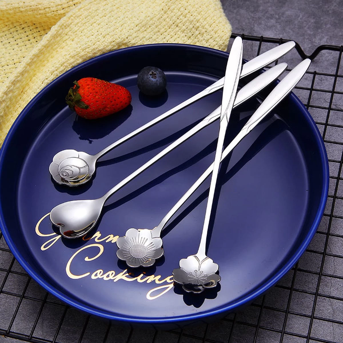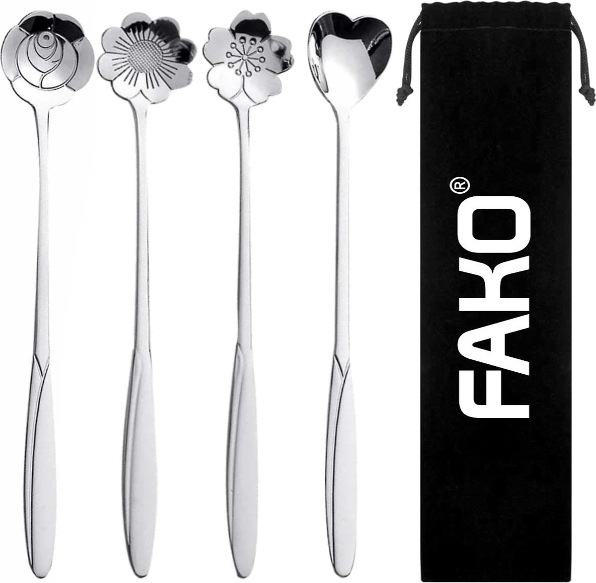 Un ensemble de 4 différentes Cuillères longues en acier inoxydable à motif de Bloem de couleur argentée de Fako Bijoux® à un prix compétitif. Ces cuillères mesurent plus de 17 cm de long et peuvent être utilisées comme cuillère à café longue, cuillère à dessert, cuillère à glace ou comme cuillère dans un délicieux cocktail. Le motif amusant assure un sourire sur le visage de tout le monde à table. Avec cette cuillère, vous atteignez toujours le fond du verre et vous n’avez pas à vous soucier que la cuillère se perde sous la mousse ou la glace. Livré dans un sac de rangement en velours.