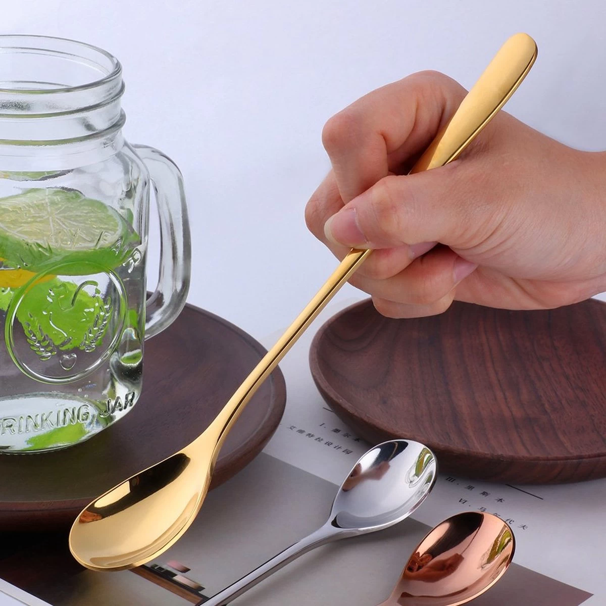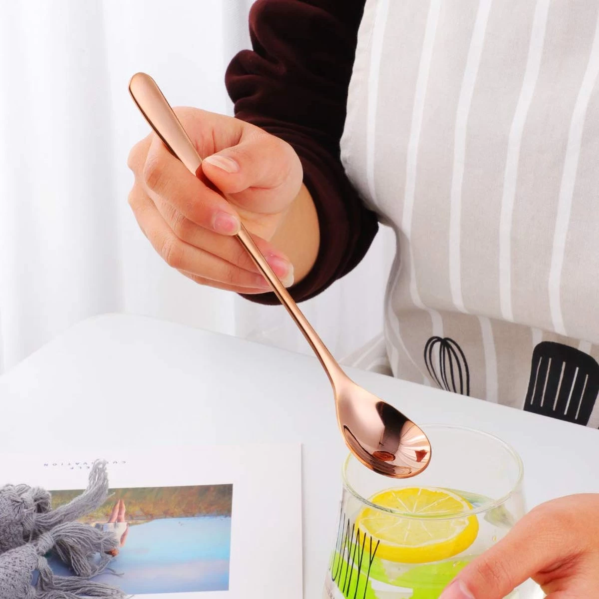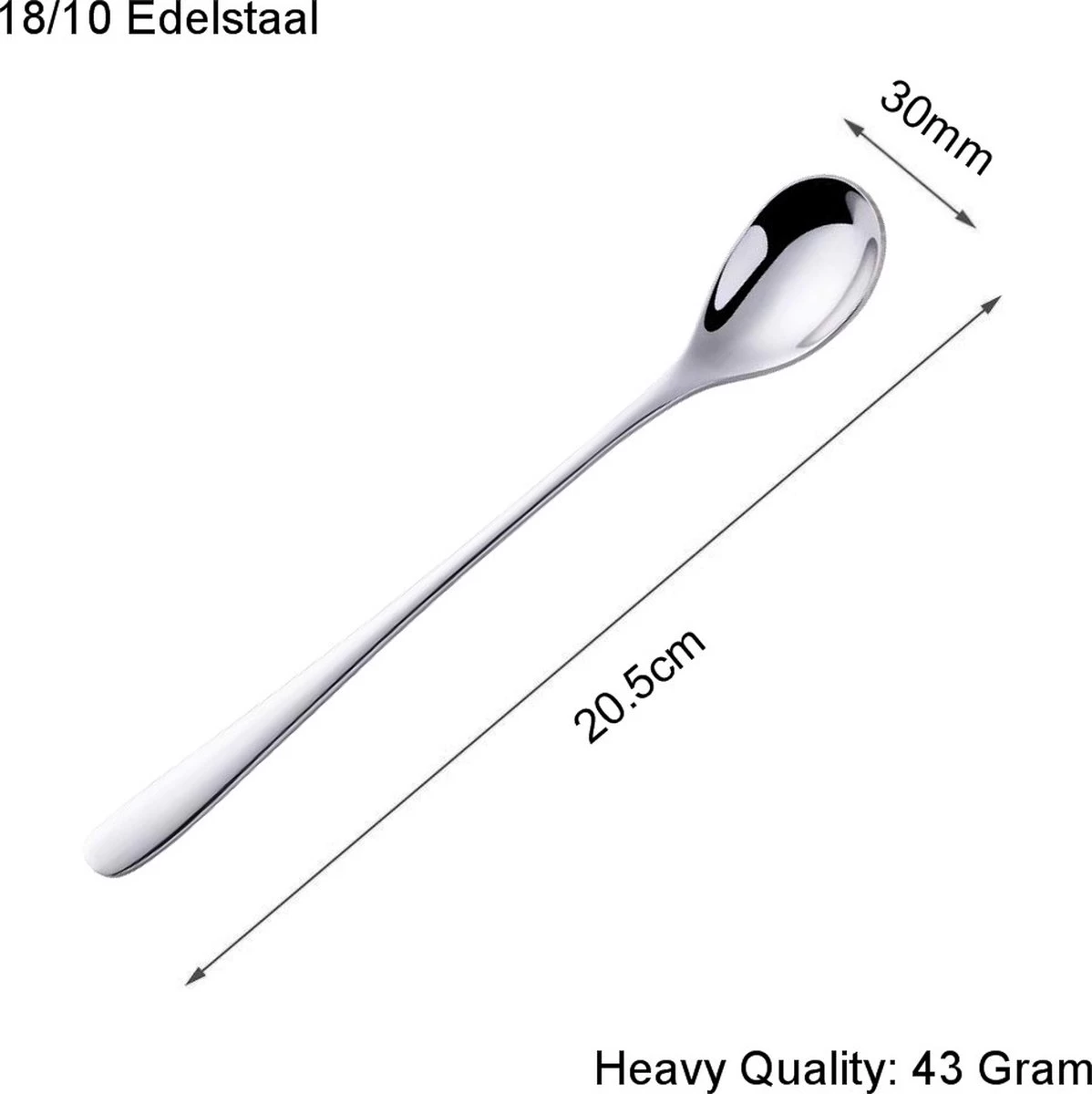 Un ensemble de 6 longues Cuillères à latte macchiato en acier inoxydable 18/10 de couleur argent de Fako Bijoux® à un prix compétitif. Ces cuillères extra longues de 20,5 cm peuvent être utilisées comme cuillère à café longue, cuillère à dessert, cuillère à glace ou comme cuillère dans un savoureux cocktail. Avec cette cuillère, vous arrivez toujours au fond du verre et vous n’avez pas à craindre que la cuillère se perde sous la mousse. Les cuillères sont presque deux fois plus lourdes que les cuillères standard et très bien finies. Livré dans un sac de rangement en velours.